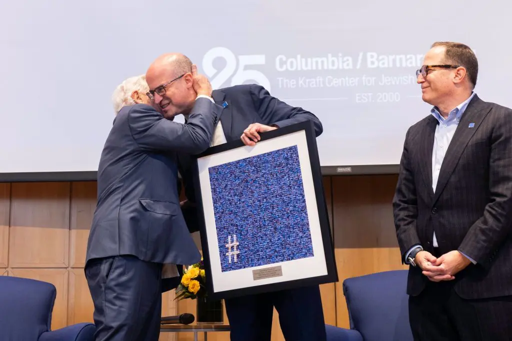 As a special tribute, we presented Mr. Kraft with a custom-designed framed artwork featuring hundreds of photos from the Kraft Center’s vibrant history, arranged in the shape of the iconic blue square symbol of his foundation, Blue Square Alliance Against Hate. The piece reflects his unwavering commitment to standing up to Jewish hate and his belief in the power of Jewish student life to shape a strong and hopeful future. We are deeply grateful to Mr. Kraft for his vision, leadership, and steadfast support, which continue to inspire our community and generations of students to come.