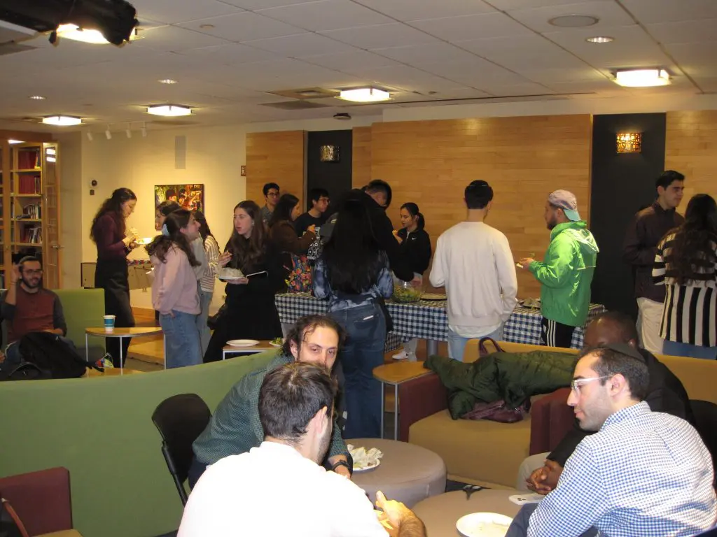 Columbia/Barnard Hillel students from all years and backgrounds welcomed members of the Columbia Catholic Ministry for a warm, community-building dinner at the Kraft Center. Over shared food and conversation, students connected casually and exchanged perspectives on their religious texts and traditions, creating a meaningful space for learning, curiosity, and interfaith friendship.